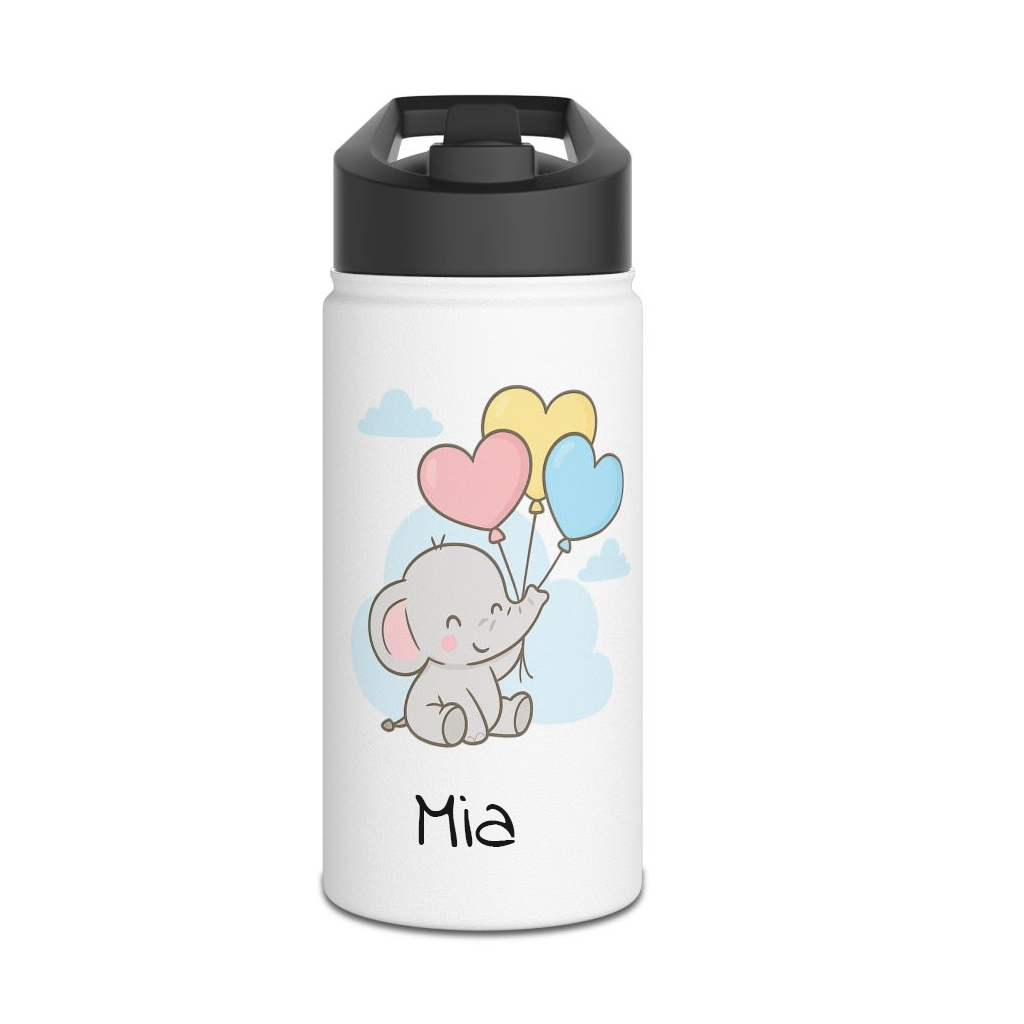 Make hydration magical with this adorable 12 oz custom kids bottle, featuring a baby elephant floating with pastel heart-shaped balloons. Designed to melt hearts at first sight, this bottle is perfect for school, daycare, or gifting. Crafted from high-quality stainless steel, it keeps beverages cold or warm while your little one enjoys their day. Add your child’s name for a custom touch that makes it truly theirs!