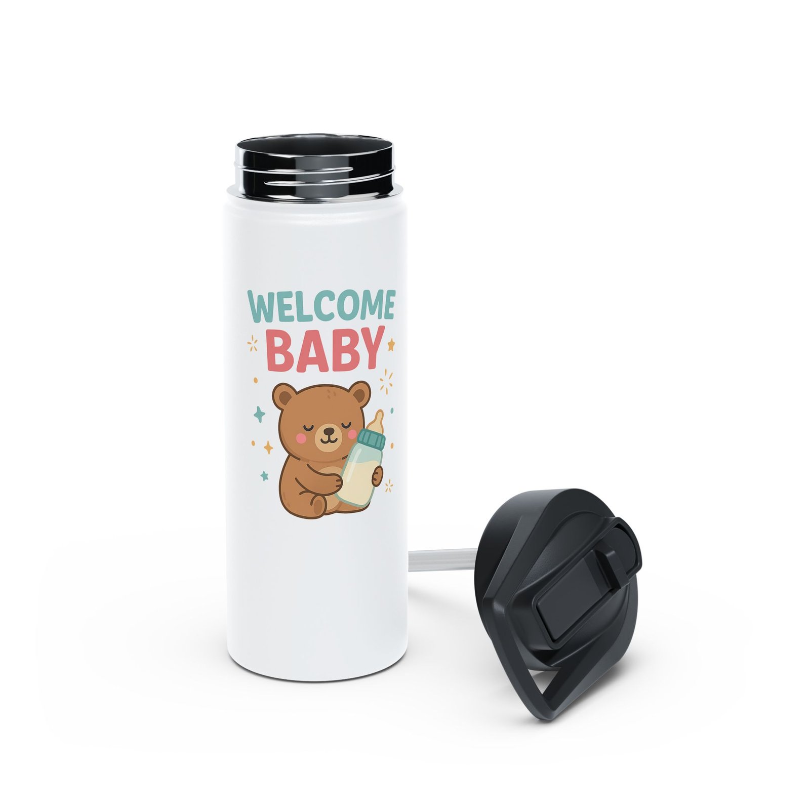 18oz White Personalized Bottle – Welcome Baby Design with Name & Heart